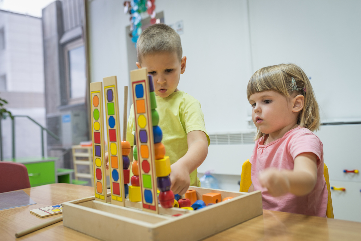 Caucasian children are playing in kindergarten